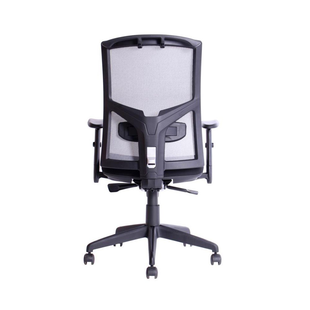 Respaldo de malla regulable en altura y apoyo lumbar graduable en altura.
