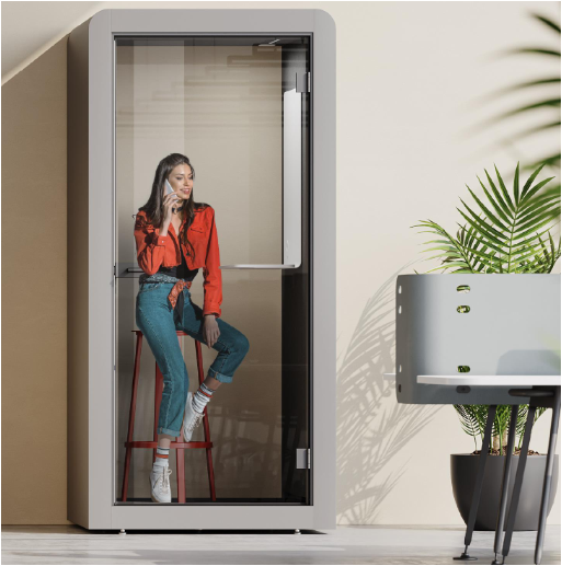 La cabina Space 1 es un espacio insonorizado innovador diseñado para proporcionar privacidad y concentración a una sola persona. Ideal para realizar llamadas, reuniones virtuales o para trabajar en un entorno tranquilo, Space 1 se destaca por su diseño compacto de 110*110*229 cm (Largo, ancho, alto) y elegante que se adapta perfectamente a cualquier espacio de trabajo. Con la capacidad de aislar ruidos externos en 40 dB, esta cabina crea un ambiente libre de distracciones, lo que la convierte en una herramienta esencial para maximizar la productividad. También se caracteriza por aislar el sonido en 30 dB desde el interior al exterior, lo que asegura un espacio de privacidad al usuario. Además, es altamente móvil, ya que está equipada con ruedas ocultas que facilitan su reubicación en cualquier momento. Su sistema de ventilación eficiente asegura que el aire se mantenga fresco durante su uso, ofreciendo comodidad incluso en sesiones prolongadas de trabajo.