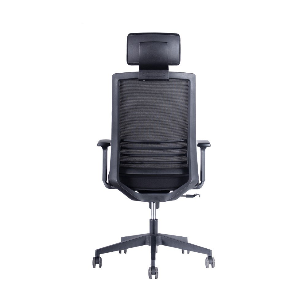 Respaldo de malla con soporte lumbar dinámico.