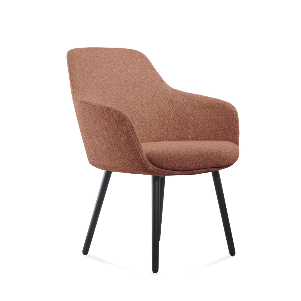Poltrona con respaldo, asiento y apoyabrazos de madera contrachapada,
