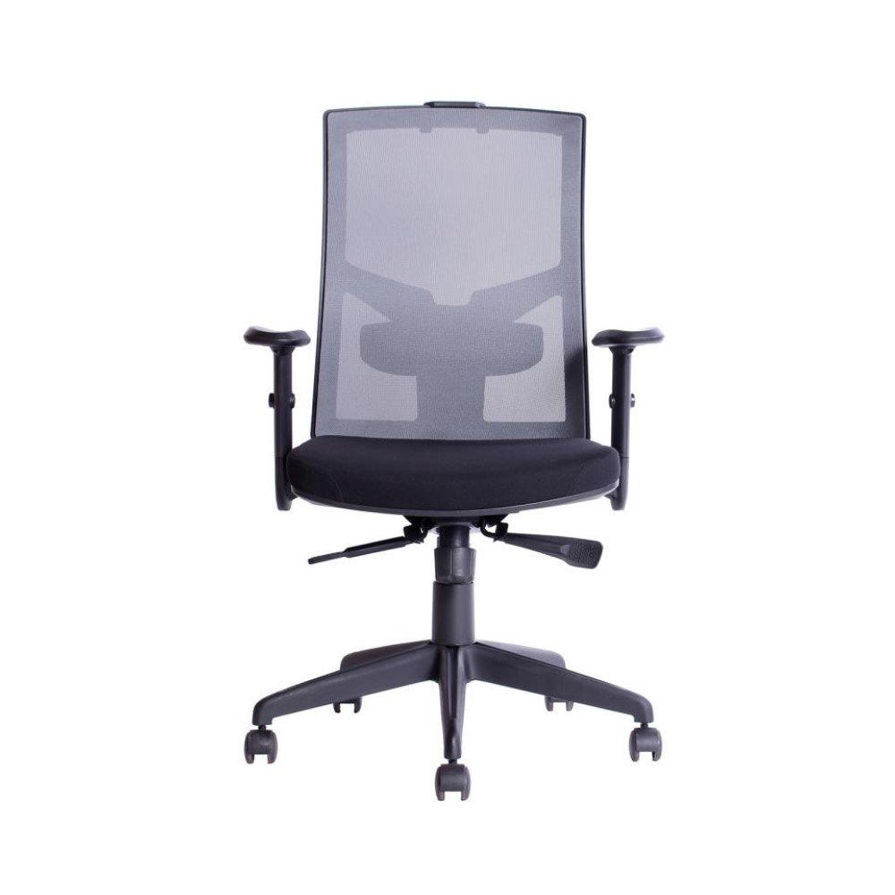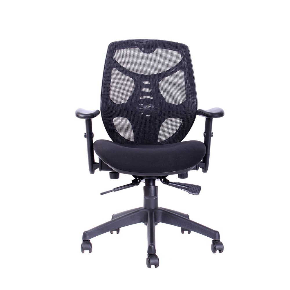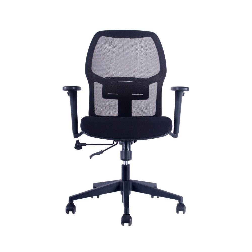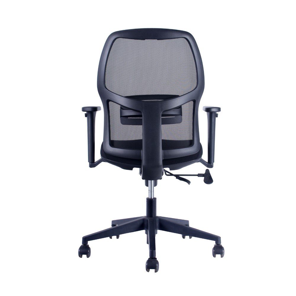 Respaldo de malla y apoyo lumbar graduable en altura.