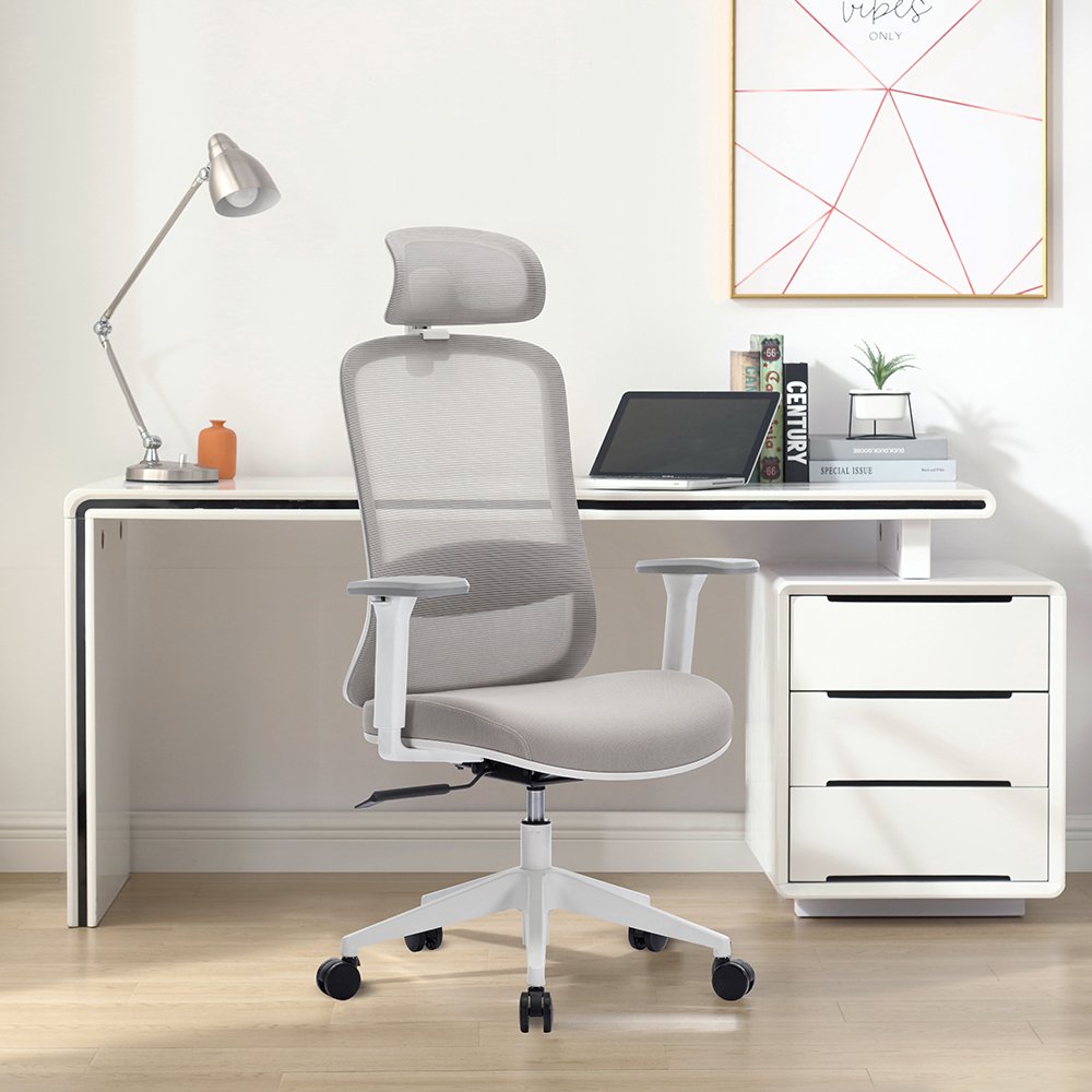 SILLA PROFESIONAL MALLA GRIS ESTRUCTURA CON CABECERO