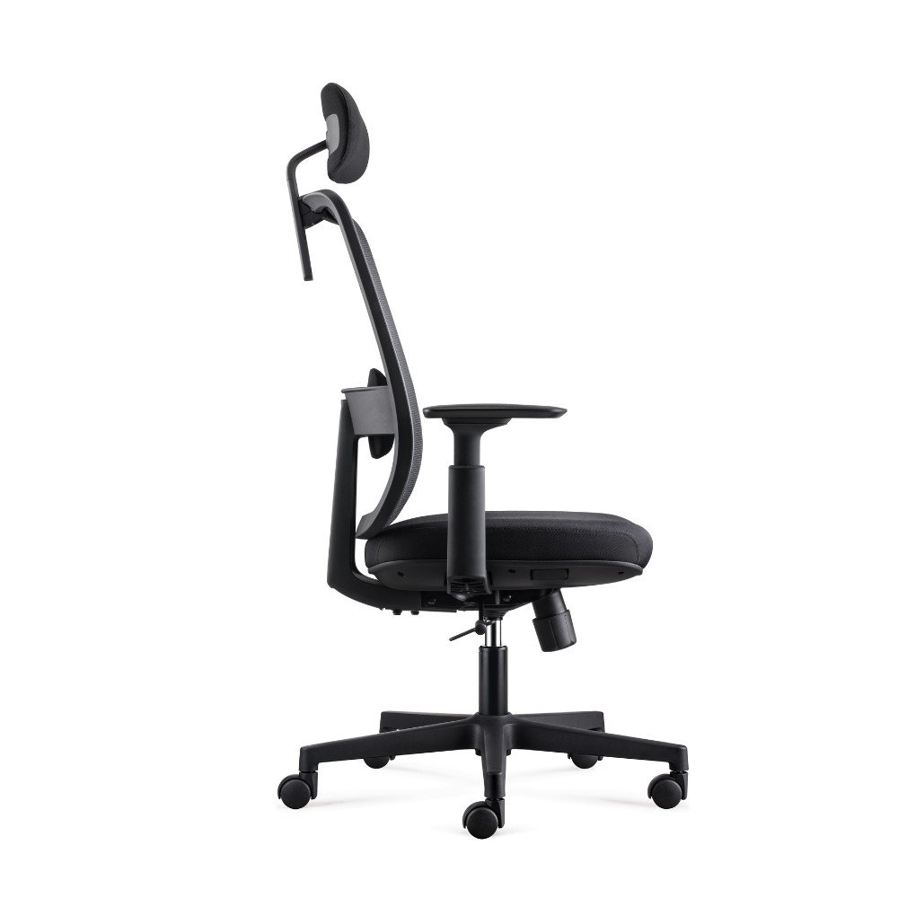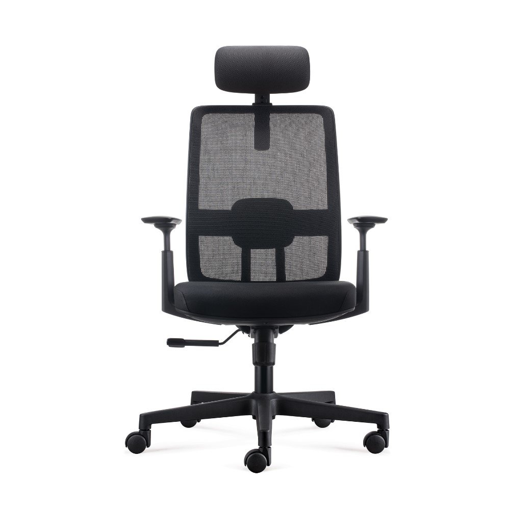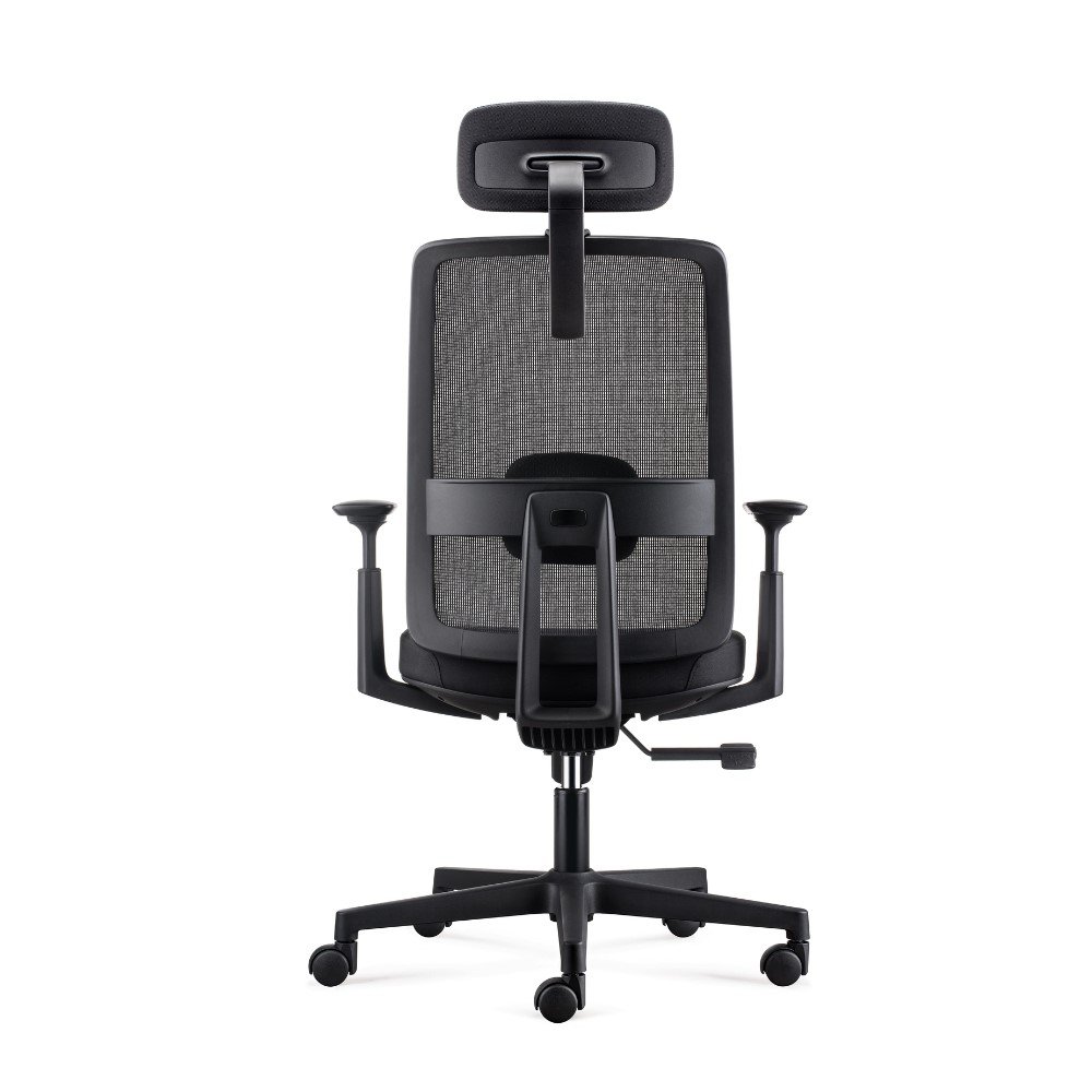 Respaldo de malla con apoyo lumbar ajustable en altura.