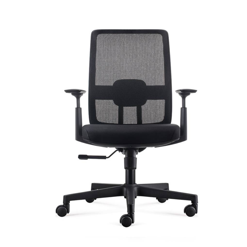 Respaldo de malla con apoyo lumbar ajustable en altura.