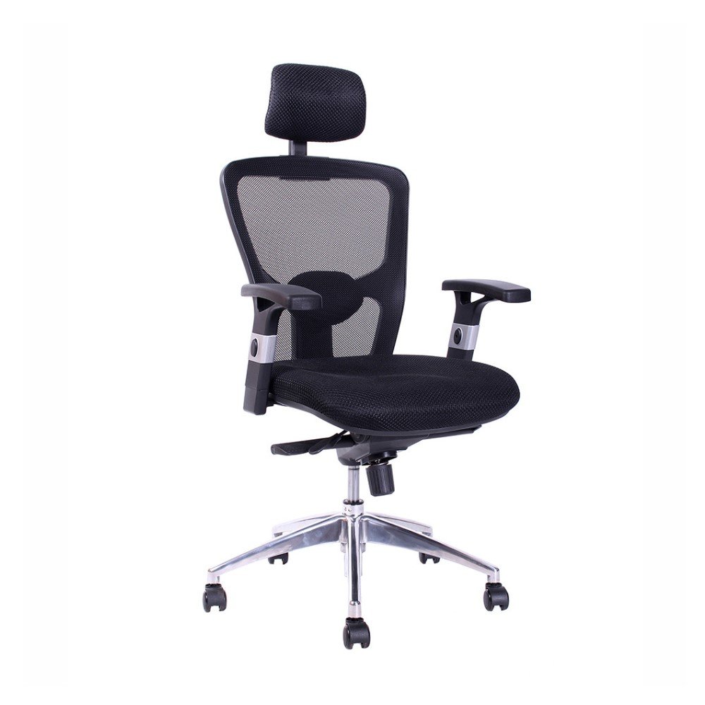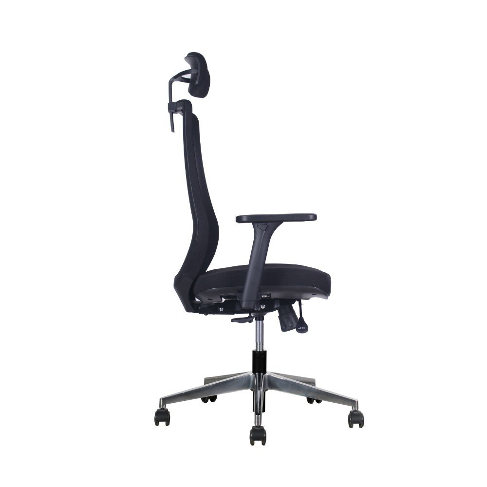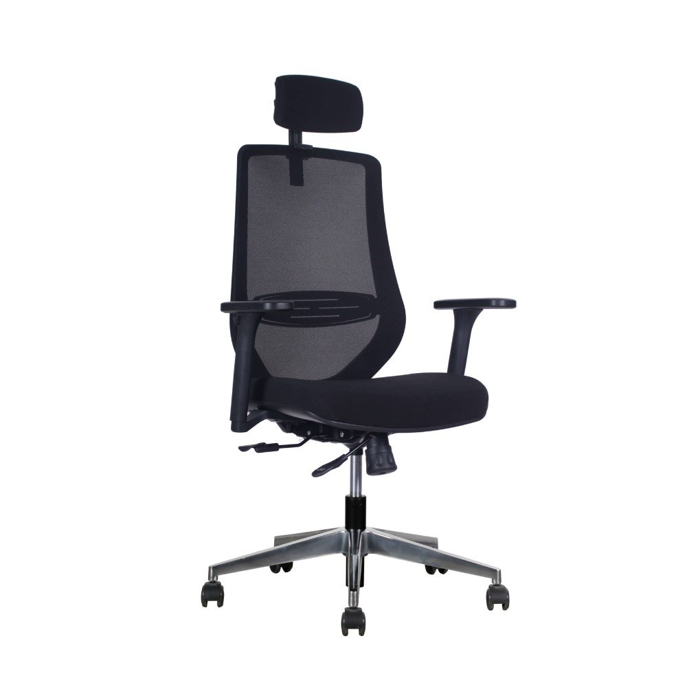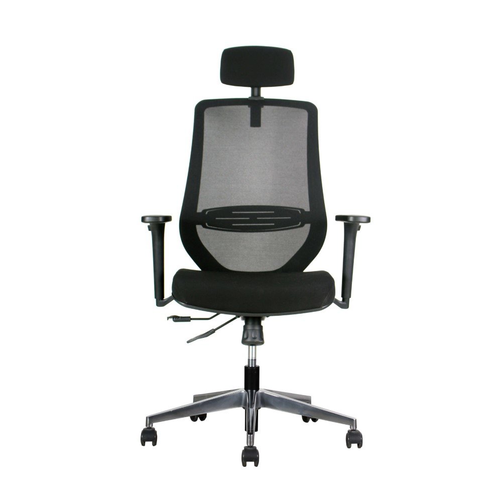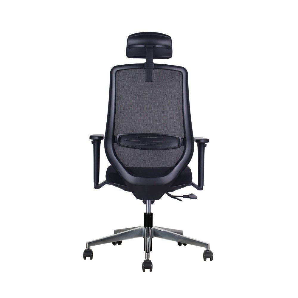 Respaldo de malla con soporte lumbar ajustable en altura.