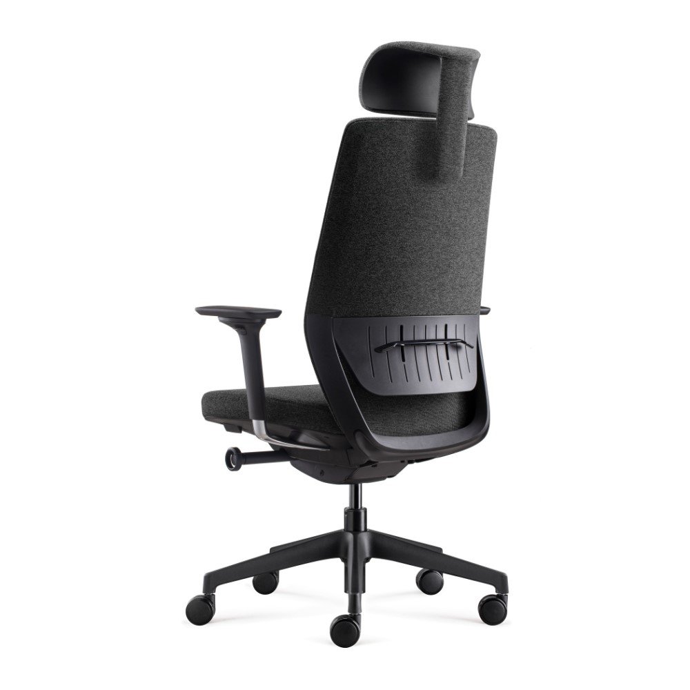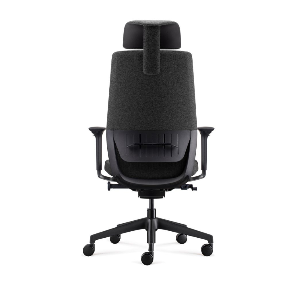 Respaldo con marco dual, con carcasa trasera tapizada en tela y frontal con marco en malla.