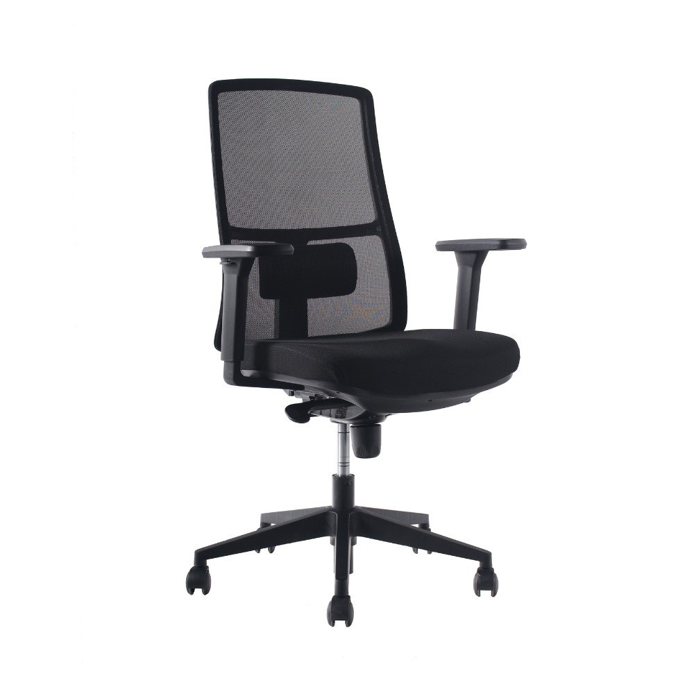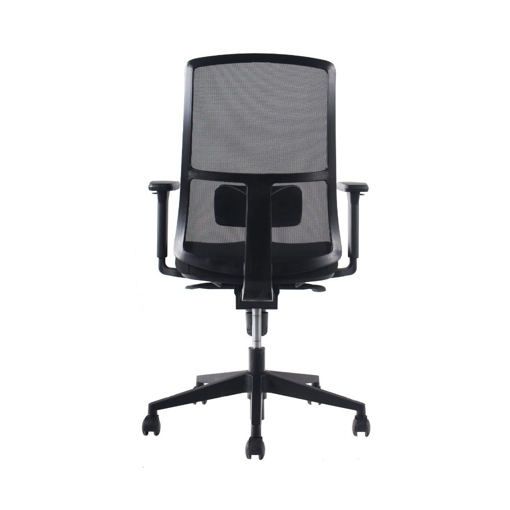 Respaldo en malla negra con apoyo lumbar ajustable.